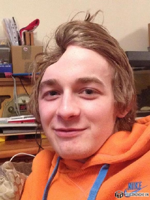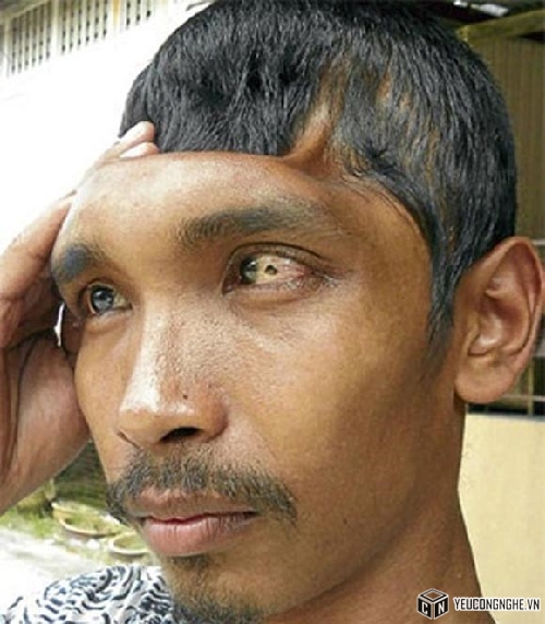 Bên cạnh bị mất nửa hộp sọ, mắt trái của anh còn bị lác nhưng tầm nhìn của anh