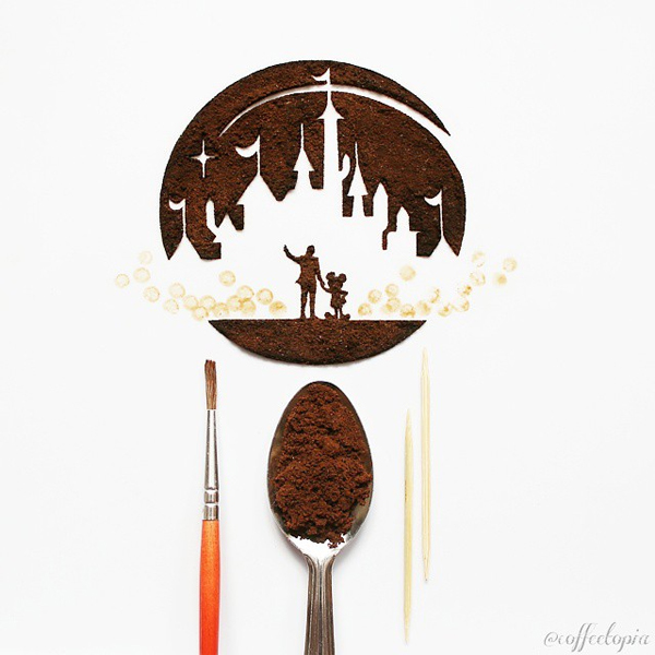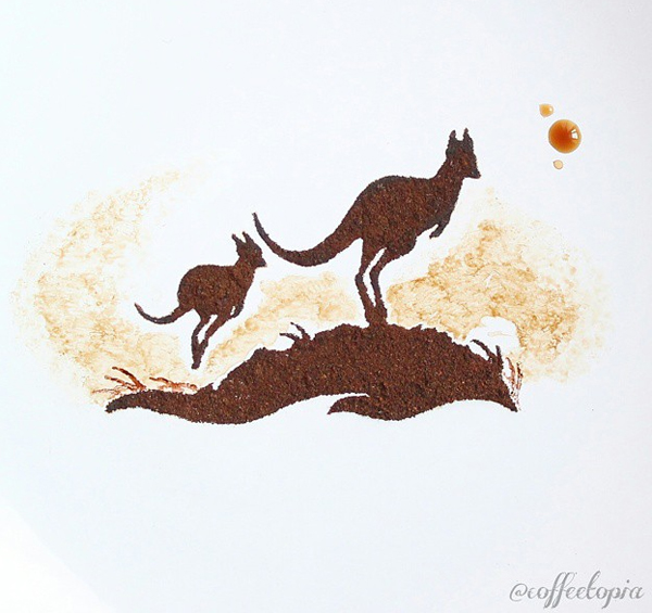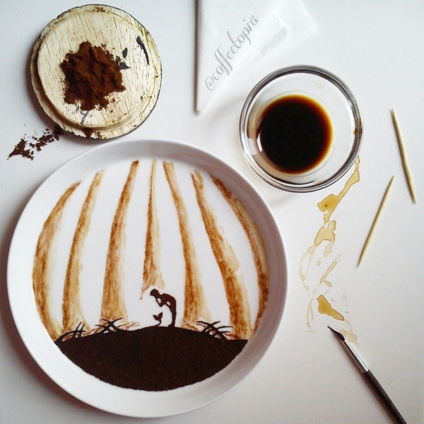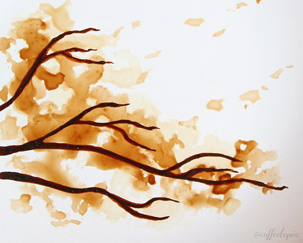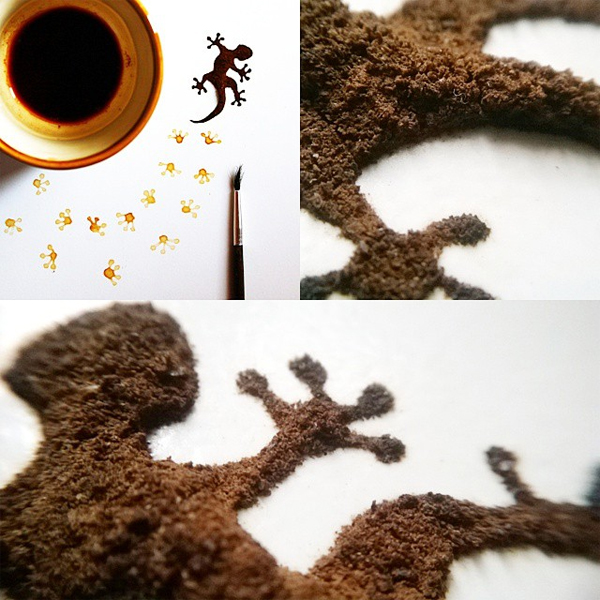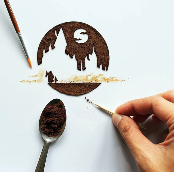 Anh đã thể hiện niềm cảm hứng đặc biệt với cà phê của mình bằng cách sử dụng chúng như một chất liệu để tạo ra những tác phẩm hội họa vô cùng độc đáo.