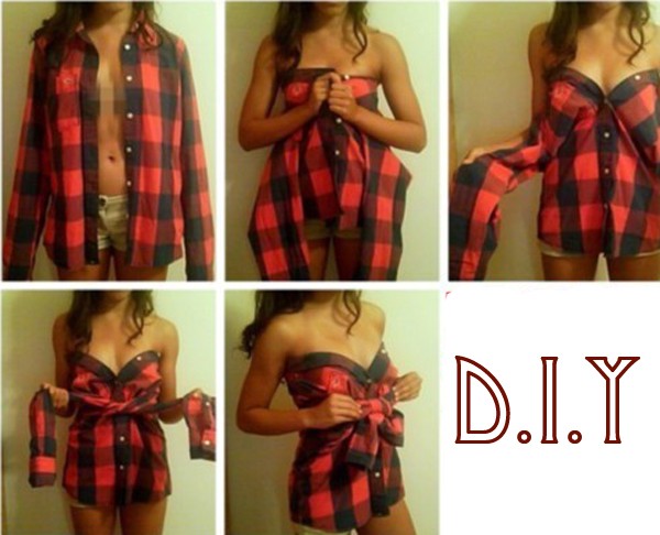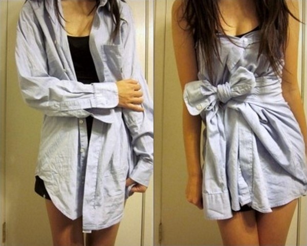 Từ những chiếc áo sơ mi nam, bạn chỉ cần buộc tay áo vòng qua eo là có ngay váy đẹp rồi!