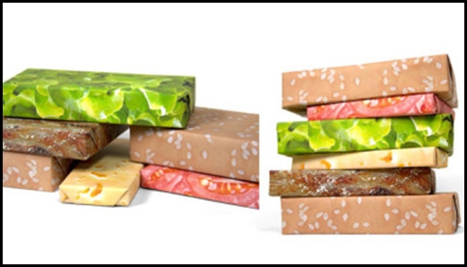 Giấy gói quà kết hợp màu, tạo thành hamburger thịt bò.