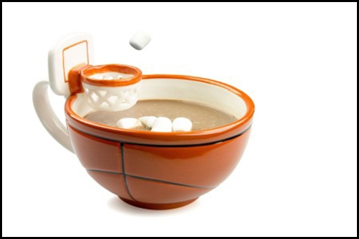 Chiếc ly có gắn khung thành bóng rổ để người uống bỏ đường vào.