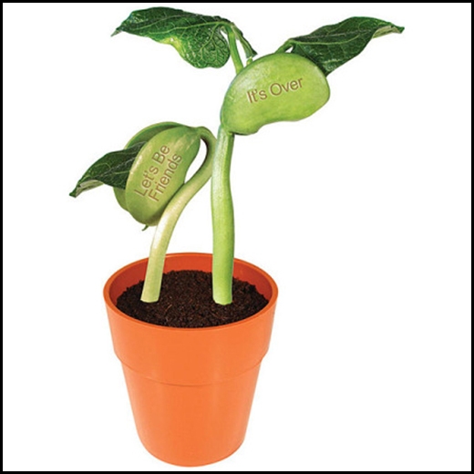 Chậu cây đậu chia tay với dòng chữ “Tất cả đã kết thúc” và “Hãy là bạn”.