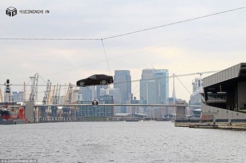 Diễn viên đóng thế người Anh, Jim Dowdall, người từng xuất hiện trong bom tấn James Bond, loạt phim Bourne và Indiana Jones, vừa thực hiện màn trình diễn lái chiếc xe thể thao Jaguar XF vượt qua sông Thames chỉ nhờ 2 chiếc dây cáp đường kính hơn 1 inch.