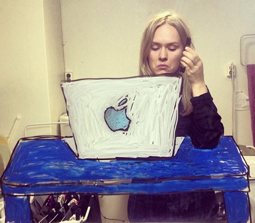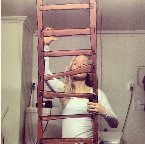 Meldahl làm rất tốt công việc “giấu” chiếc điện thoại của mình trong mỗi bức ảnh. Cô khéo léo che nó lại sau những hình vẽ trên gương, hay khiến cho nó hòa vào cùng bối cảnh.