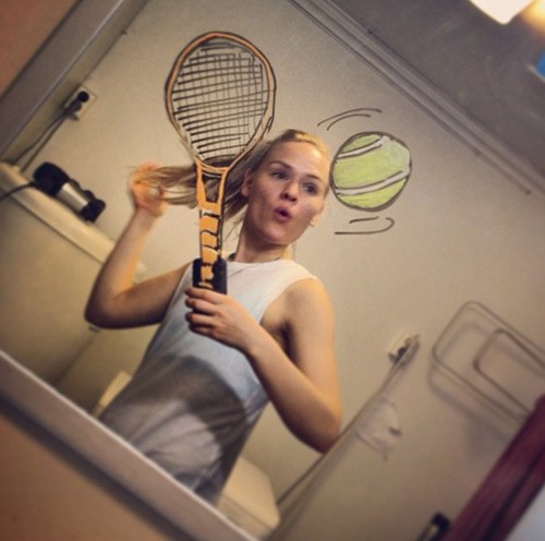 Trong suốt hơn một năm qua, nữ họa sỹ người Na Uy đã đăng tải lên tài khoản Instagram của cô hàng trăm bức ảnh với sự hòa trộn của ảnh chân dung và hình vẽ trên gương.