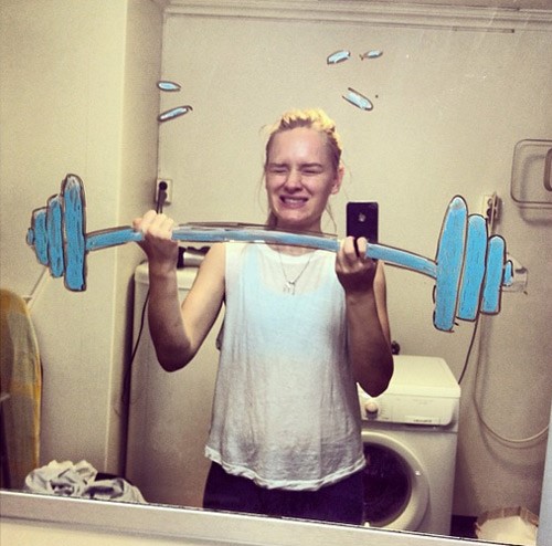 Vừa "tập tạ", vừa chụp ảnh "tự sướng"