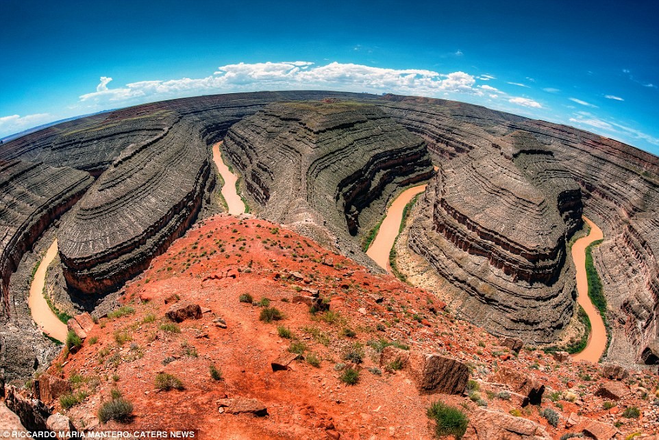 Dòng sông San Juan nằm ở độ sâu 305 m bên dưới cùng những vách đá tạo thành cảnh quan Goosenecks nổi tiếng.