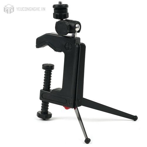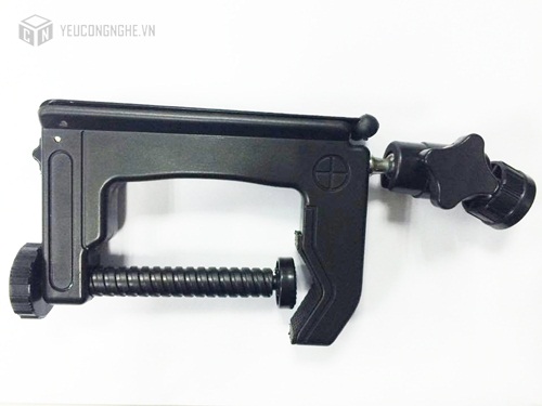 Gá hình chữ G thiết kế với vít xoáy để cố định gá vào thành bàn phía trên đầu là vít 1/4 có thể linh hoạt xoay theo nhiều hướng.