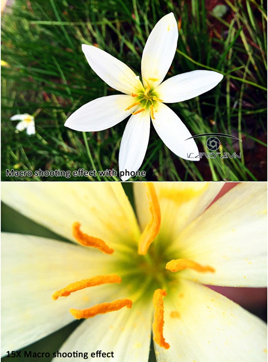 Lens Macro có tiêu cự 15x, giúp bạn chụp cận cạnh các vật thể nhỏ như hoa lá, côn trùng một cách sắc nét.