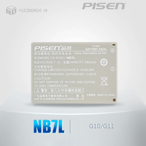 Pin Pisen NB-7L theo chuẩn pin Lithium ion, dung lượng 950 mAh dung lượng lớn cho thời gian sử dụng lâu hơn, tuổi thọ cao và an toàn cho thiết bị.