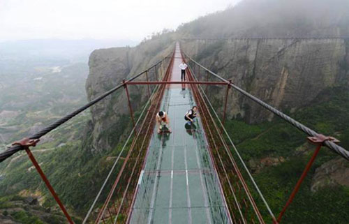 Các kỹ sư Trung Quốc đã thiết kế một cây cầu có lối đi bằng kính ở độ cao 180m so với mặt đất ở quận Bình Giang, tỉnh Hồ Nam, miền nam Trung Quốc.