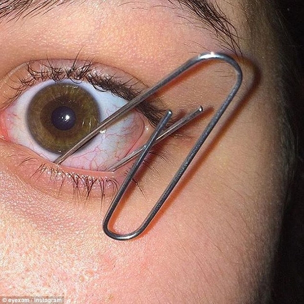 Trào lưu mới rộ lên trên mạng gần đây chắc chắn sẽ khiến bạn phải rùng mình. Tài khoản Instagram Eyexam hiện chuyên đăng tải các bức hình về những người móc tất cả mọi thứ vào mắt mình. Choáng váng hơn, tài khoản này thu hút hơn 110,000 người theo dõi hàng ngày.