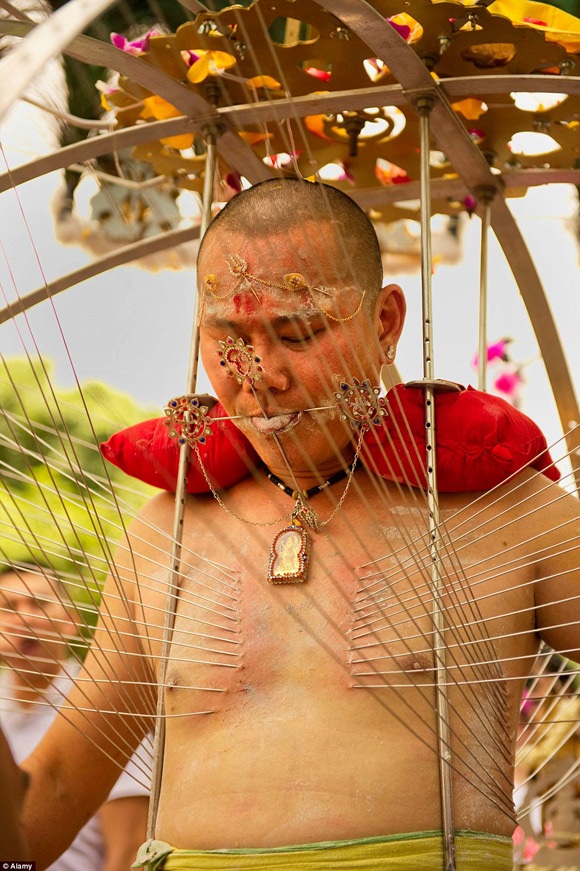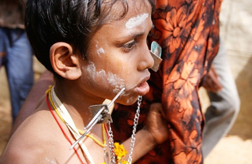 Điều thú vị là tuy hành động này trông có vẻ gây ra nhiều đau đớn cho cơ thể, nhưng những người này, cả đàn ông, phụ nữ, lẫn trẻ em đều trông hết sức bình thường và thoải mái. Thậm chí, những nơi bị đâm xuyên trên cơ thể đều lành lặn, không có vết thương hay dấu hiệu chảy máu nào cả.