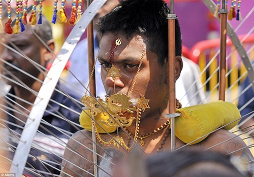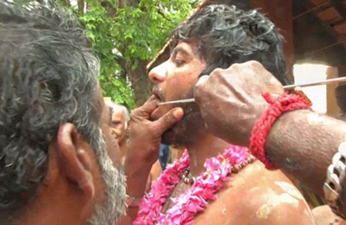 Ở mức độ thông thường, người tham gia lễ hội sẽ dùng nhiều ngọn giáo nhọn đâm xuyên qua hai bên má hoặc lưỡi của họ.