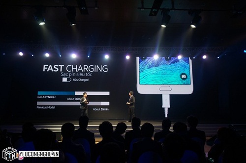 | Galaxy Note 4 cũng được trang bị khả năng sạc pin siêu tốc, giúp đầy 50% pin chỉ trong 30 phút sạc, nhanh hơn 55 phút so với Galaxy Note 3.