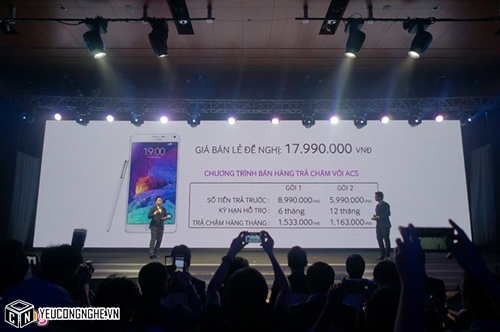 | Samsung cũng công bố mức giá của Galaxy Note 4 ở mức 17,99 triệu đồng. Người mua có thể tham gia chương trình mua máy trả chậm hằng tháng.