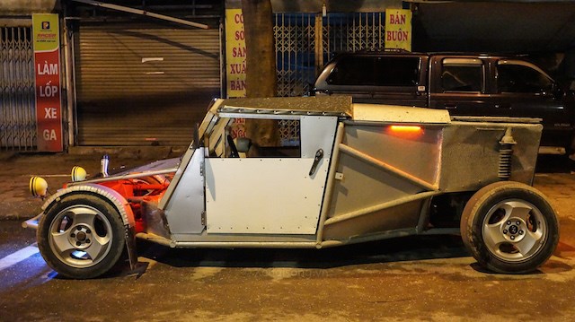 Chiếc ôtô tự chế mang ý tưởng về một chiếc siêu xe thể thao với rất nhiều phụ tùng “đồng nát” của một người dân Hà Nội được bắt gặp trên đường du Xuân.