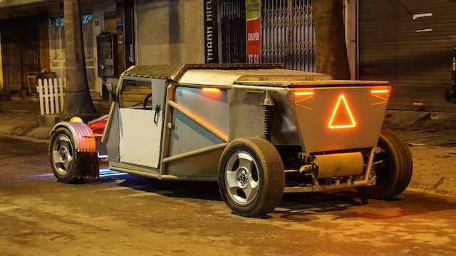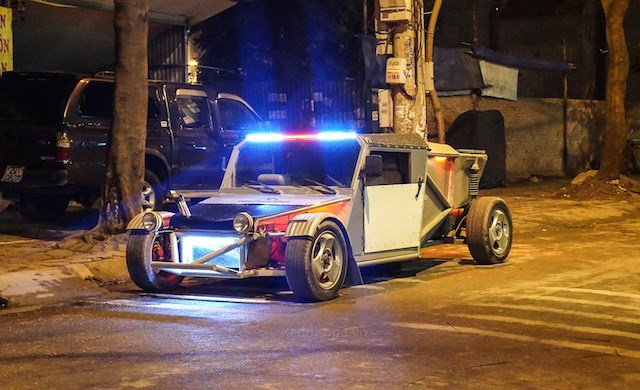 Dịp Tết Ất Mùi này, chiếc “siêu xe” tự chế của anh Hoành được nhìn thấy trên đường phố. Đặc biệt trong ánh đèn phố đêm, dàn đèn LED trang trí bên ngoài xe khá hấp dẫn.