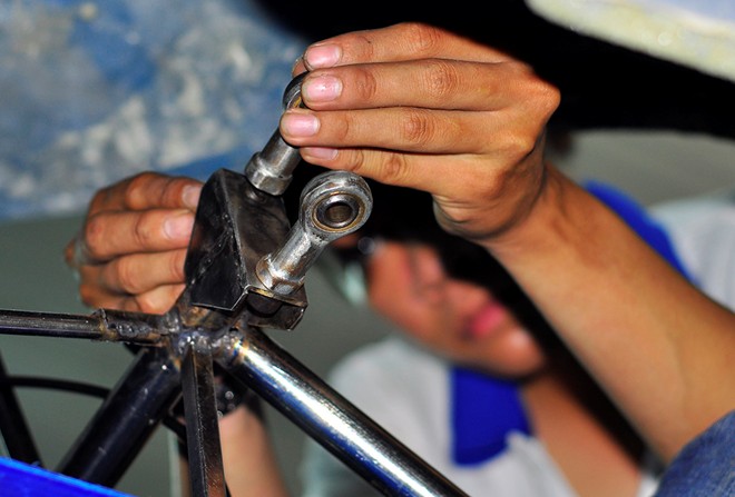 Một sinh viên phụ trách cơ khí cho biết, cồn cháy có nhiệt độ thấp hơn xăng, nén nổ yếu nên công suất không cao. Do vậy, nhóm phải chế lại hệ thống pit-tông và xi-lanh, lắp thêm kim phun điện tử để kiểm soát nhiên liệu.