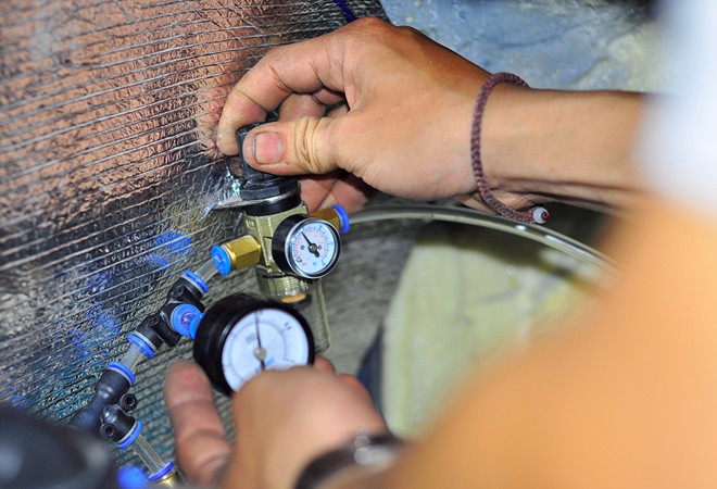 Trong buồng máy của chiếc xe có hệ thống đồng hồ đo áp suất khí.