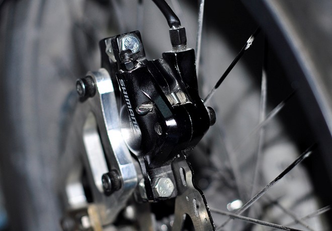 Bốn bánh xe được lắp ráp 4 cụm phanh dầu.