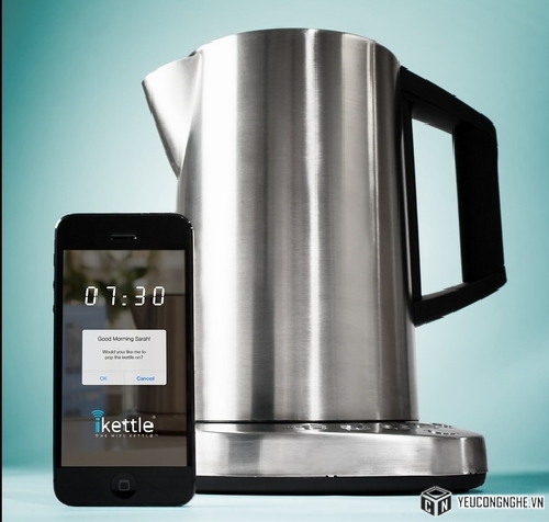 Ấm thông minh iKettle có khả năng kết nối với mạng Wi-Fi của gia đình bạn. Đồng thời thông qua một ứng dụng trên smartphone, bạn có thể sử dụng điện thoại của mình để điều khiển các chức năng của chiếc ấm, như tùy chọn nhiệt độ. Thậm chí, chiếc ấm này còn có chế độ Wake up cho phép bạn yêu cầu ấm đun sôi nước khi ra khỏi giường sau khi thức dậy và cầm điện thoại lên. Khi nước sôi, thông tin sẽ được thông báo tới điện thoại của bạn và bạn có thể thiết lập nhiệt độ giữ ấm cho chiếc ấm thông minh này.