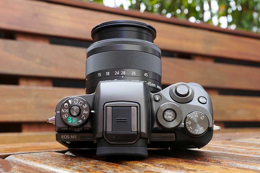 Với thiết kế hoàn toàn khác so với các thế hệ mirrorless trước đây của Canon, Canon M5 có kiểu dáng trông giống một chiếc SLR cổ với hàng loạt những núm vặn ở trên.