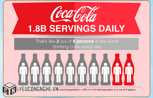 Mỗi ngày người dân trên thế giới tiêu thụ khoảng 1,8 tỷ sản phẩm Coca-cola. Điều này đồng nghĩa với việc cứ 8 người thì có 2 người uống Coca-cola mỗi ngày.