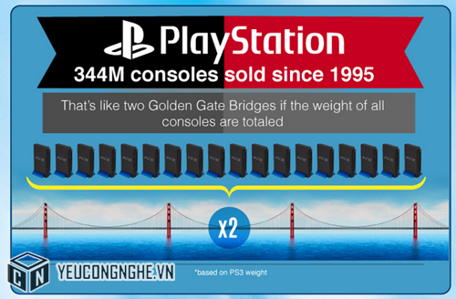 344 triệu chiếc máy chơi game PlaySation đã được bán từ năm 1995. Tổng khối lượng của chúng bằng 2 cây cầu Golden Gate Bridge nổi tiếng của Mỹ.