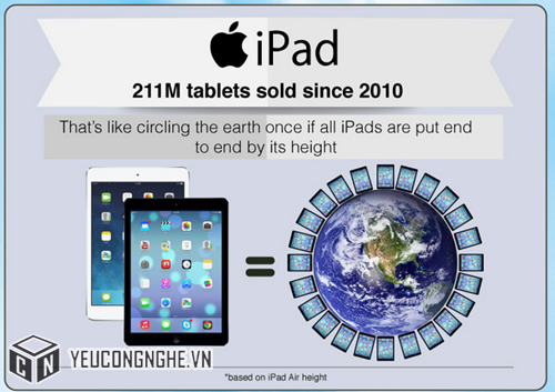 Từ năm 2010 đến nay đã có khoảng 211 triệu chiếc iPad được bán ra. Số iPad này đủ để xếp xung quanh một vòng Trái đất.