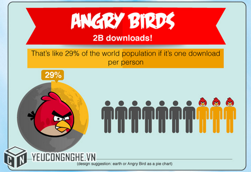 Game Angry Birds đã được tải về khoảng 2 tỷ lần. Nếu mỗi người tải một lần thì con số này tương đương với 29% dân số thế giới.