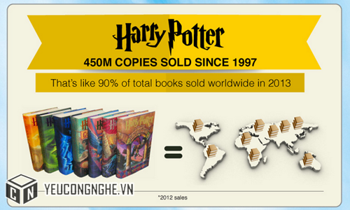 450 triệu cuốn Harry Potter đã được bán kể từ năm 1997. Nó tương đương với 90% số sách được bán ra toàn thế giới năm 2013.