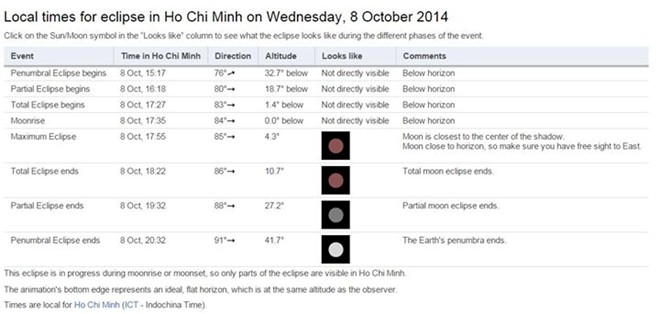 - Do mình đam mê chụp thiên văn, nên đã biết trước lịch xảy ra hiện tượng này và chuẩn bị để thực hiện. Đây là các mốc thời gian diễn ra theo giờ Việt Nam, mình cũng thông báo cho các bạn trong Group ở các múi giờ khác.