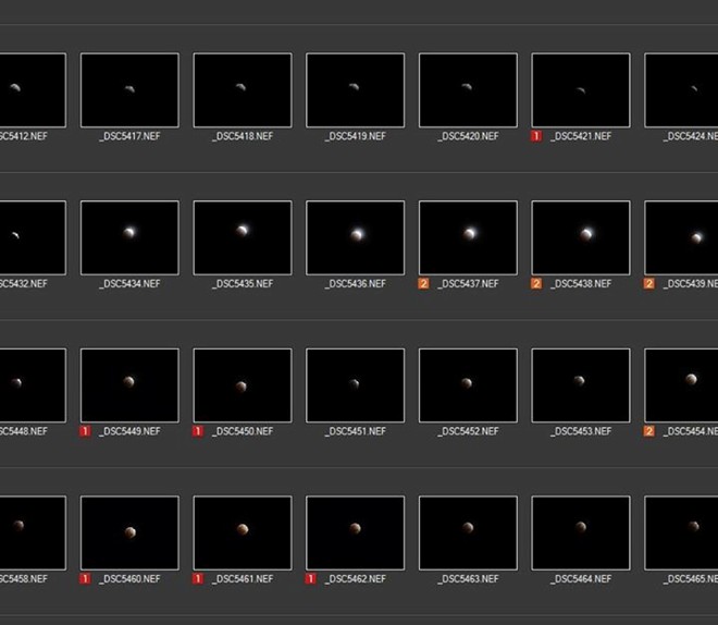 Theo anh Du Chí Hùng, tác giả của bức ảnh chụp hiện tượng Nguyệt thực được chia sẻ nhiều trên Facebook, đây là tấm ảnh được ghép từ nhiều tấm ảnh chụp trăng khác nhau. Mỗi ảnh trăng được chụp riêng bằng ống kính tiêu cự lớn, sau đó lồng ghép vào cùng một bối cảnh.