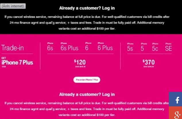 Ngay sau khi Apple cho ra mắt chính thức bộ đôi iPhone 7/ 7 Plus, nhà mạng T-Mobile đã đưa một chính sách vô cùng hấp dẫn cho người dùng đang mong muốn sở hữu iPhone mới nhất năm nay của Apple.
