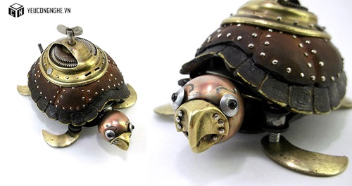 Đây là những tác phẩm của nghệ sĩ Igor Verniy. Ông chuyên nghiên cứu và điêu khắc, lắp ghép động vật từ các đồ dùng như xe đạp, đồng hồ, điện tử ....