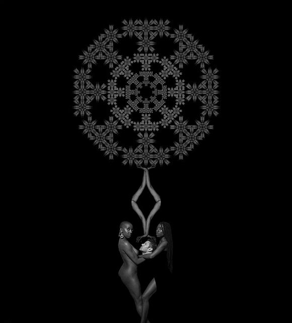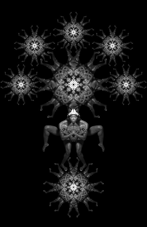 Thân hình của con người được Cox khéo léo sắp xếp thành những biểu tượng mang tính tâm linh.