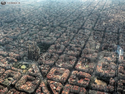 | Nhìn từ trên cao, thủ đô Barcelona của Tây Ban Nha trông giống như một thành phố trong phim khoa học giả tưởng. |