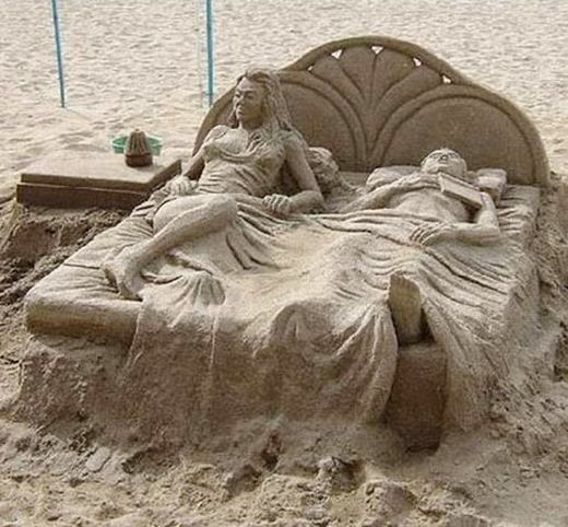 Một công trình nghệ thuật trên bãi biển làm từ cát.