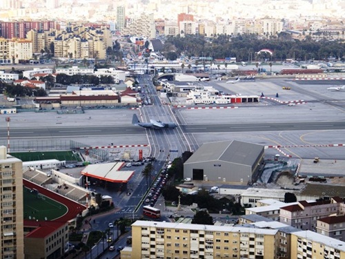 Ngoài một đầu hướng ra cảng, kẹp giữa đô thị và núi cao, đường băng của sân bay quốc tế Gibraltar (Lãnh thổ hải ngoại thuộc Anh) còn cắt ngang đại lộ Winston Churchill, một trong những con phố đông đúc nhất ở Gibraltar.