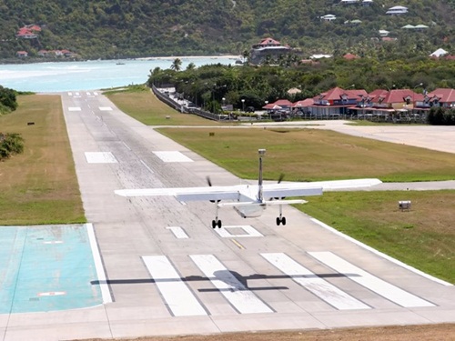 Tương tự như sân bay ở St. Maarten, đường băng ở sân bay của St. Barths chỉ dài 640 m và có một đầu hướng ra bãi biển công cộng rất đông du khách.
