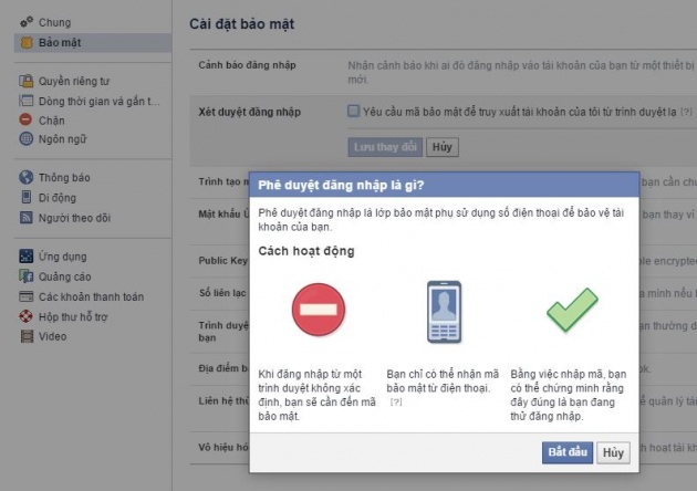 Việc thiết lập một mã xác thực riêng cho bản thân sẽ giúp người dùng đảm bảo tính an toàn. Khi có một ai đó hay chính bạn đăng nhập vào Facebook thông qua một trình duyệt hay thiết bị khác không được đồng bộ, Facebook sẽ gửi một mã xác thực tới những địa chỉ hay số điện thoại được cài đặt sẵn. Sau đó, bạn cần phải điền mã xác thực mới có thể đăng nhập vào bảng tin.