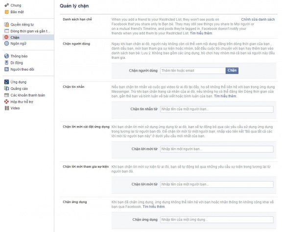 Để chặn bạn có thể vào theo Setting > Blocking (Cài đặt > Chặn)
