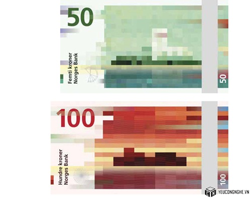 Thật vậy, các mẫu tiền giấy mới của Na Uy đều là những tác phẩm nghệ thuật có ý nghĩa khá thú vị. Sau khi gửi lời mời tới một số nhà thiết kế, ngân hàng Norges Bank của nước này đã chọn được hai mẫu thiết kế. Trong khi mặt trước của mẫu tiền giấy mới sẽ hiển thị hình ảnh theo kiểu truyền thống, thì mặt sau của tờ tiền sẽ có thiết kế kiểu ý niệm (concept art), chuyển đổi các cảnh quan ven biển của Na Uy thành các pixel (điểm ảnh) nghệ thuật.