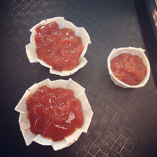 Mở những cạnh rìa của cốc đựng sốt tương để mà bạn có thể tha hồ chấm và bỏ được nhiều tương hơn.