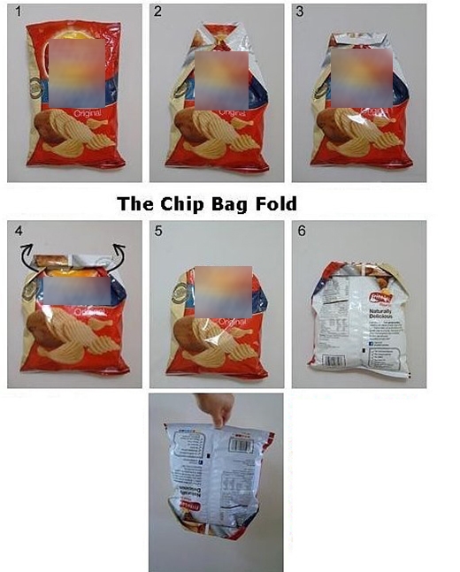 Hãy gói bịch snack thừa theo cách trên để dùng cho lần sau nhé!