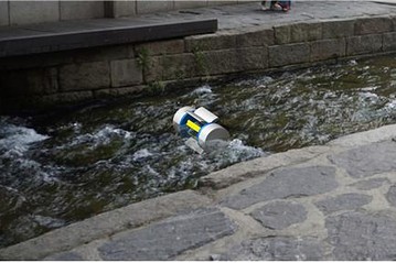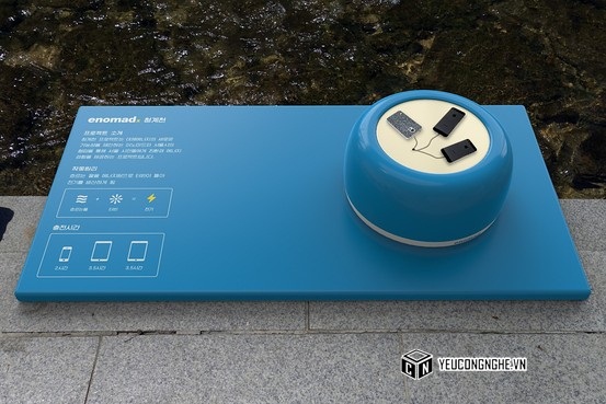 Trạm sạc điện thoại công cộng đặc biệt này sử dụng các tuabin phát điện có khả năng biến đổi năng lượng thủy triều tại một con suối chảy suốt ngày đêm ở Seoul thành điện năng.
