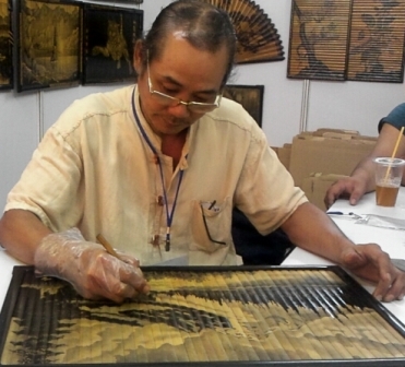 “Lúc đầu tôi gác nguyên cây tre lên hun khói, nhưng thân tre tròn, nhỏ nên hình vẽ bị hạn chế. Về sau, tôi chẻ tre thành những thanh nhỏ bằng 2 ngón tay sau đó kết lại thành khổ lớn gác bếp hun khói liên tục trong vòng 3 tháng. Khi khói phủ một lớp đen bóng như nhựa đường trên khổ tre thì tôi bắt tay vào sáng tác” - ông Vũ Quốc Sự chia sẻ.