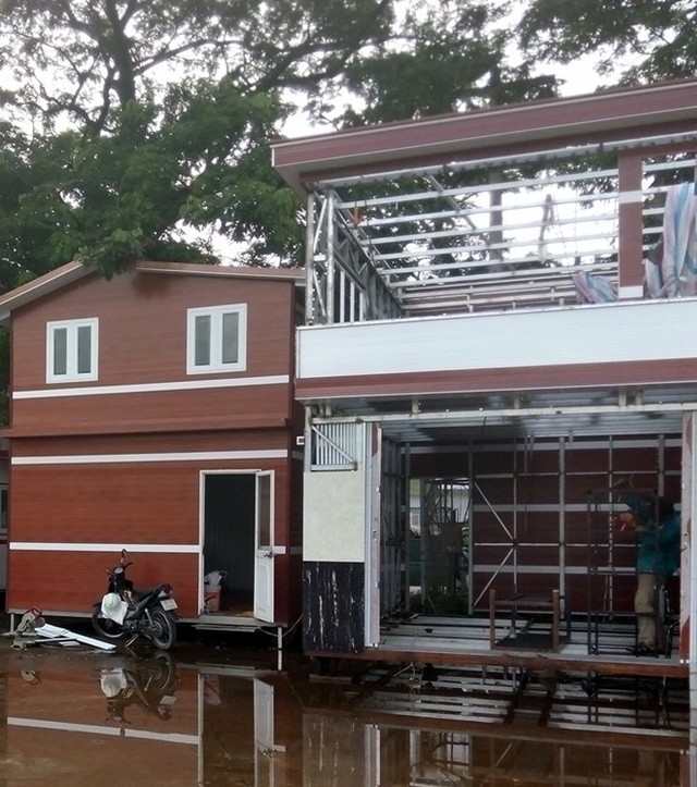 Chủ nhân của những ngôi nhà lầu di động độc đáo này, ông Tiêu Văn Luận - một triệu phú Mỹ cho biết: “Khoảng 30 năm trước, tôi đã thi công những ngôi nhà như thế này ở Mỹ. Ở đó khá thịnh hành loại nhà này. Người ta đến các cơ sở sản xuất và thích kiểu nhà nào thì mua và kéo về sử dụng”.
