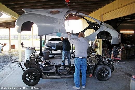 Vỏ của xe được tăng cường độ bền bằng sợi thủy tinh trước khi phun sơn.